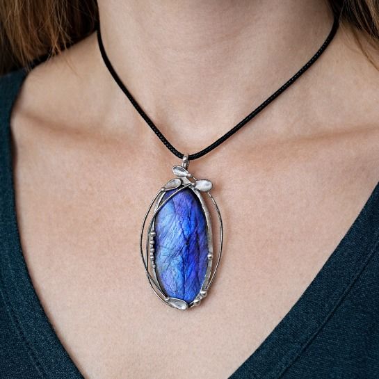 Cínovaný šperk z nádherného modrého labradoritu a chirurgické oceli.