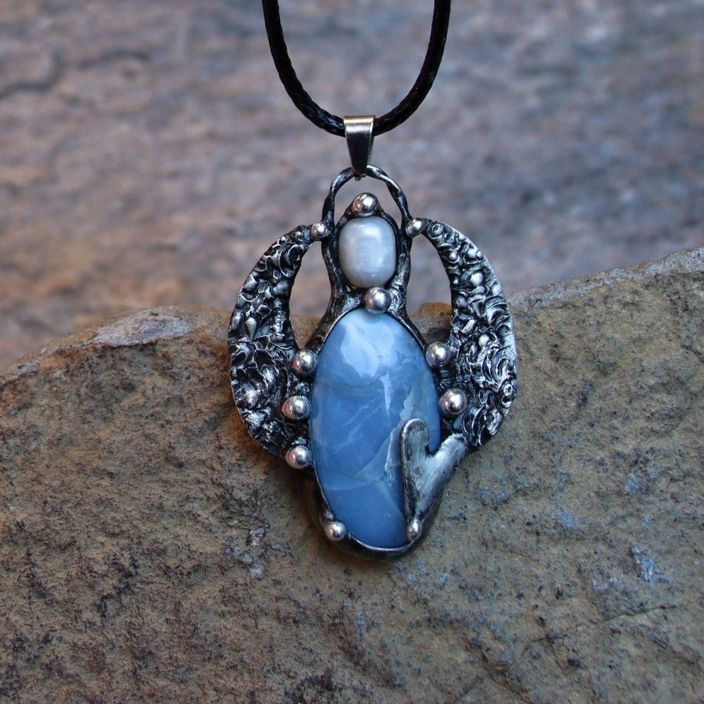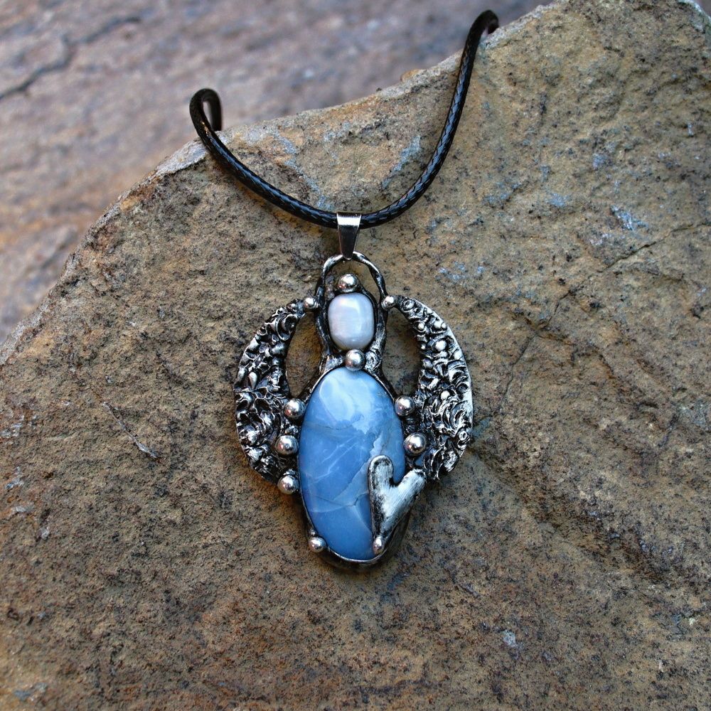 Barevná škála opálů je bohatá. Modrý opál zobrazuje řadu modrých odstínů, od světle nebesky modré až po hlubší oceánské tóny. Často je spojován s krční čakrou. Předpokládá se, že modrý opál podporuje jasnou komunikaci, zlepšuje sebevyjádření a podporuje artikulaci myšlenek a pocitů. Také se říká, že stimuluje kreativitu a inspiraci. Jako takový jej někteří používají jako nástroj pro posílení imaginativního myšlení a uměleckého vyjádření. Modrý opál je také obecně považován za symbol naděje a nových začátků.