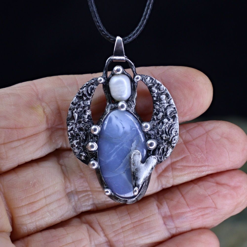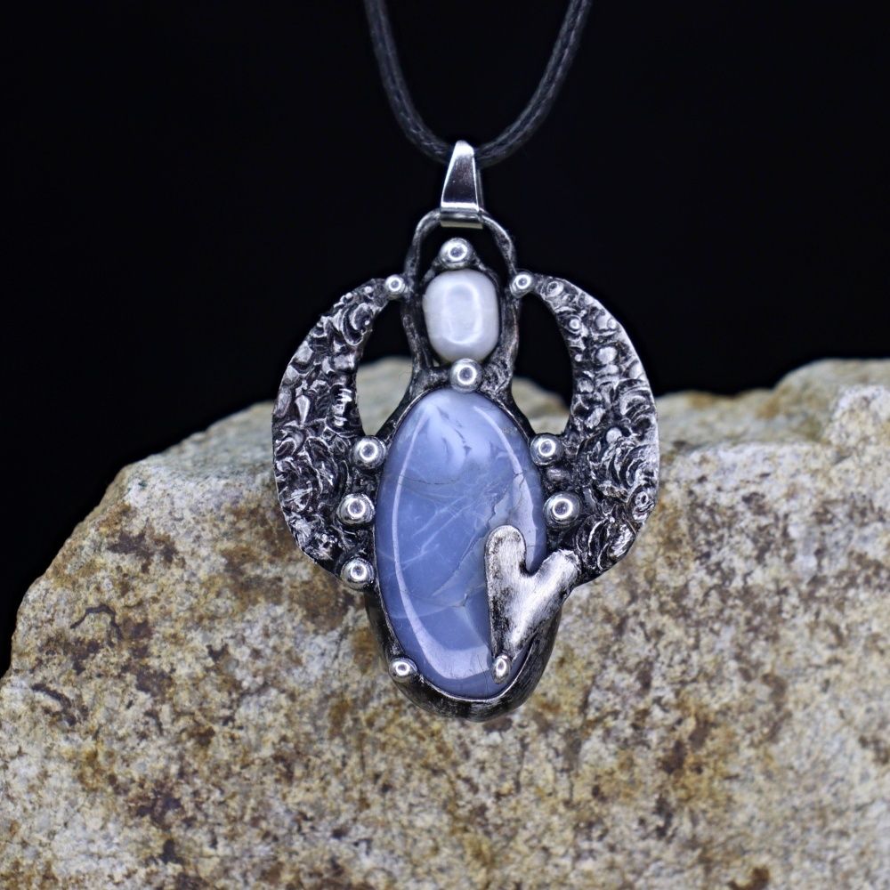 Náhrdelník je vyroben Tiffany technikou z bezolovnatého cínu. Šperk je patinován, leštěn a ošetřen proti oxidaci. Zavěšení dle vašeho výběru. Nabízím bižuterní černé kulaté lanko délky 43 cm+5cm prodlužovací řetízek, to se používá nejčastěji, nebo nerezovou obruč, nerezový řetízek nebo plochou kůži, délka dle Vašeho přání. Šperk bude zaslán v dárkové krabičce.
