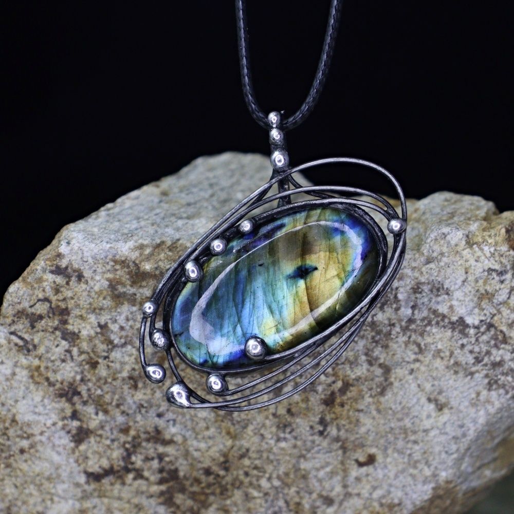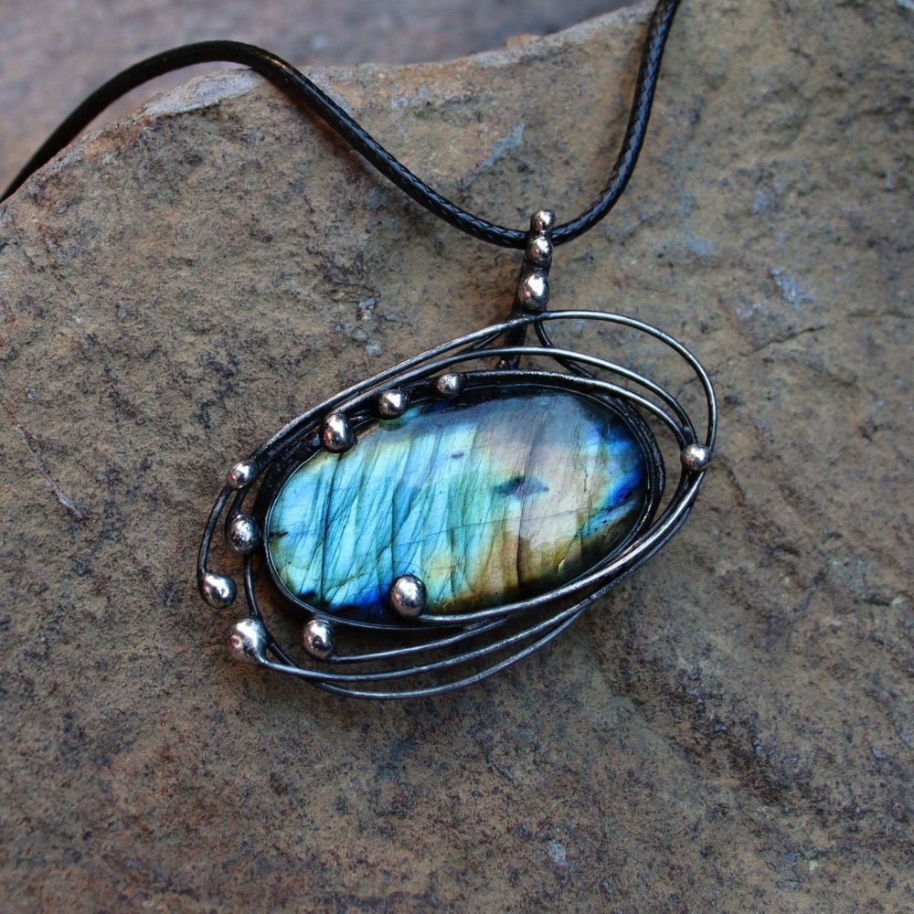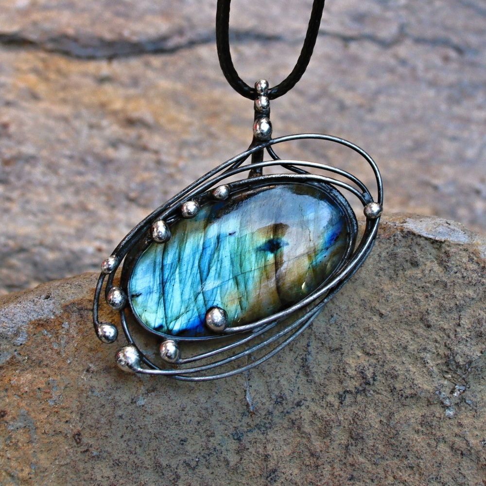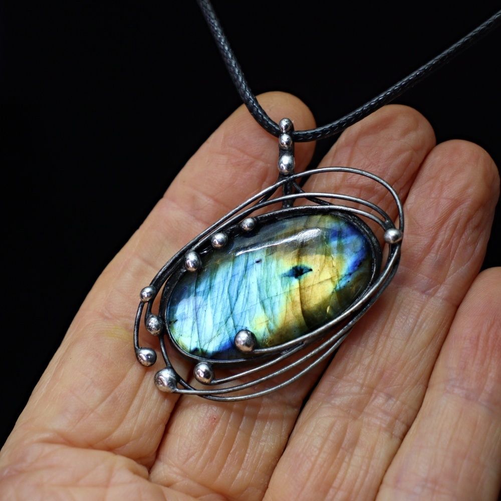 Náhrdelník z krásného, velkého labradoritu s celoplošnými odlesky.